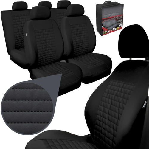 Set Huse Auto Universale din 9 Piese, Piele Ecologica, Model Perfect Line, Culoare Negru, Compatibile cu Scaune cu Airbag