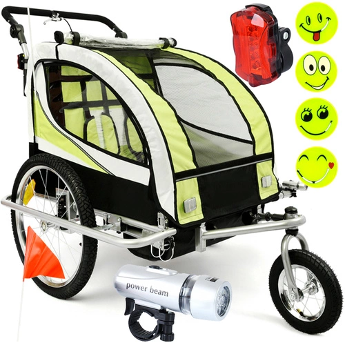 Remorca de biciclete cu amortizor 2 persoane +JOGGER verde + gratuit