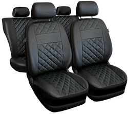 Set Huse Auto Universale din 9 Piese, Piele Ecologica, Model Perfect Line, Culoare Verde, Compatibile cu Scaune cu Airbag