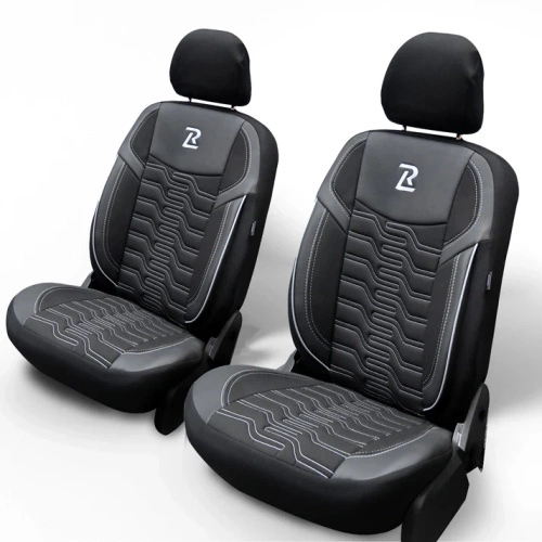 Huse pentru scaunele din față ARES, din piele, groase, gri-negru – față
